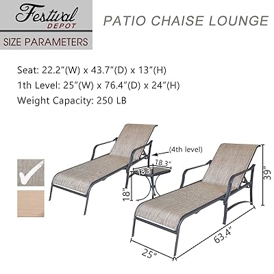 4.4 out of 5 stars with 95 ratings. 3.3 out of 5 stars 62. The mainstays sand dune chaise lounge chairs measure 36 x 84 x 39 and come in a set of 2, allowing you to unwind by yourself or with a friend on your patio, deck, porch, or backyard. Sold and shipped by costway. This 3 piece set includes 2 chaise loungers with a square side table.